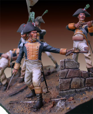La figura representa un oficial de la Infantería Ligera española con los colores del batallón de Gerona, aunque puede ser pintado de cualquier otro batallón (consultar página principal del diorama).